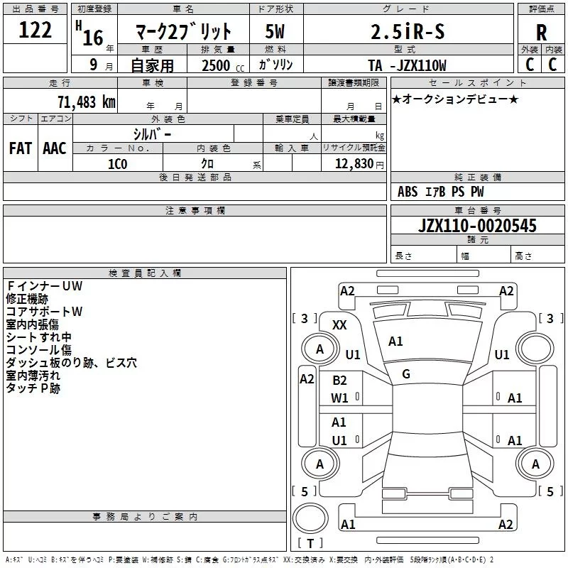 - Кузов: JZX110W