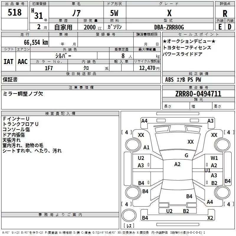 • Кузов: ZRR80G