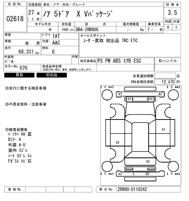 • Кузов: ZRR80G