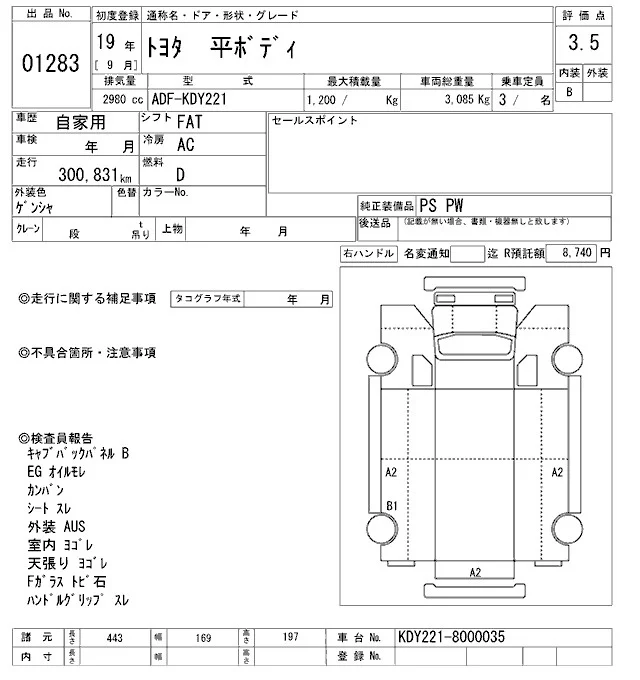 Дополнительными расходами может быть "сверхнормативное" хранение в порту, согласно СВХ "ВАТ": с 6-8 сутки по 1000р, 9-10 сутки по 2000р, с 11 суток по 5000р. Так же, в случае оформления а/м на физ лицо с пропиской не ДВФО, брокер предоставляет либо услугу оформления на ДВ физика стоимостью 20000р или регистрация ФЛ стоимостью 10000р. Вся представленная на сайте информация, касающаяся технических характеристик, наличия на складе, стоимости товаров, носит информационный характер и ни при каких условиях не является публичной офертой, определяемой положениями Статьи 437(2) Гражданского кодекса РФ.
