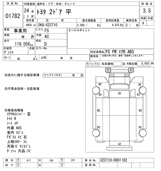 Дополнительными расходами может быть "сверхнормативное" хранение в порту, согласно СВХ "ВАТ": с 6-8 сутки по 1000р, 9-10 сутки по 2000р, с 11 суток по 5000р. Так же, в случае оформления а/м на физ лицо с пропиской не ДВФО, брокер предоставляет либо услугу оформления на ДВ физика стоимостью 20000р или регистрация ФЛ стоимостью 10000р. Вся представленная на сайте информация, касающаяся технических характеристик, наличия на складе, стоимости товаров, носит информационный характер и ни при каких условиях не является публичной офертой, определяемой положениями Статьи 437(2) Гражданского кодекса РФ.