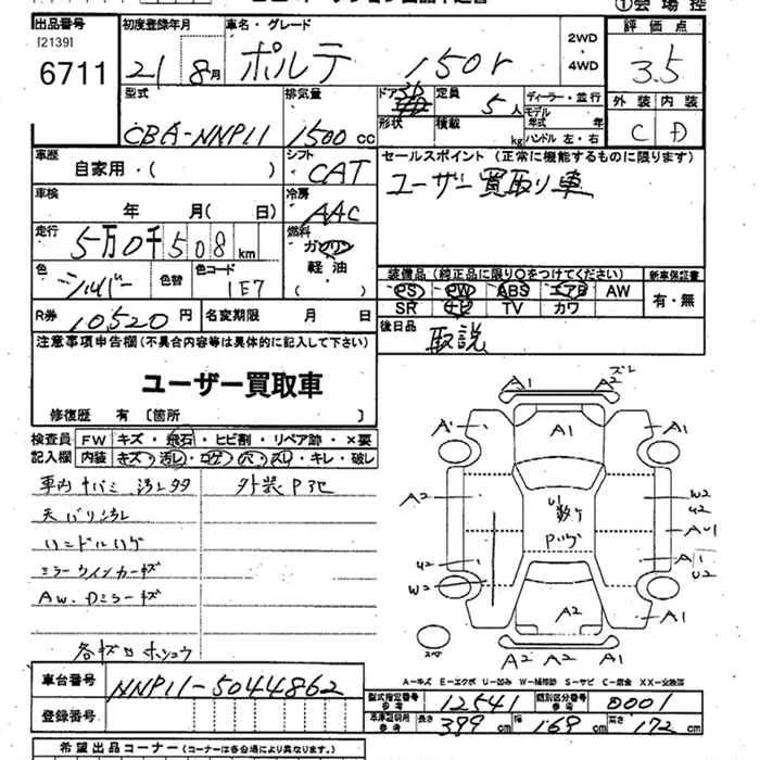 150I HID SELECTION | CBA-NNP15 | 1NZ-FE | Full-time 4WD | 4AT | 1496cc | 105ps(77kW)/6000rpm | AИ-92 | 1 622 250 | |