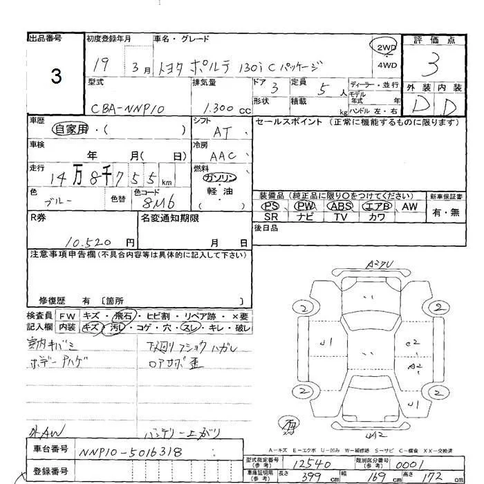 150R | CBA-NNP11 | 1NZ-FE | FF | 4AT | 1496cc | 109ps(80kW)/6000rpm | AИ-92 | 1 596 000 | |