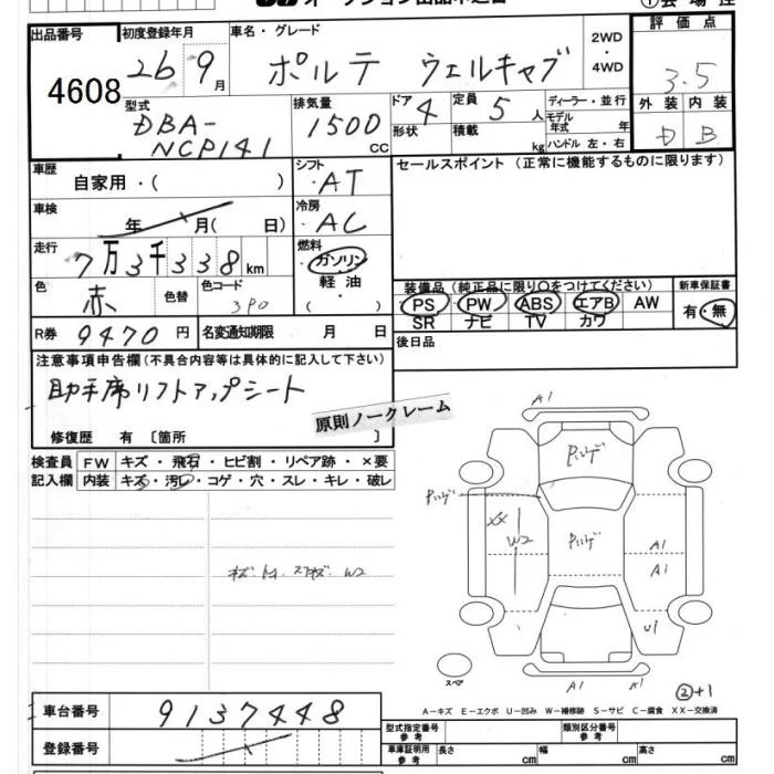 X | DBA-NCP145 | 1NZ-FE | Full-time 4WD | CVT | 1496cc | 103ps(76kW)/6000rpm | AИ-92 | 1 820 571 | |