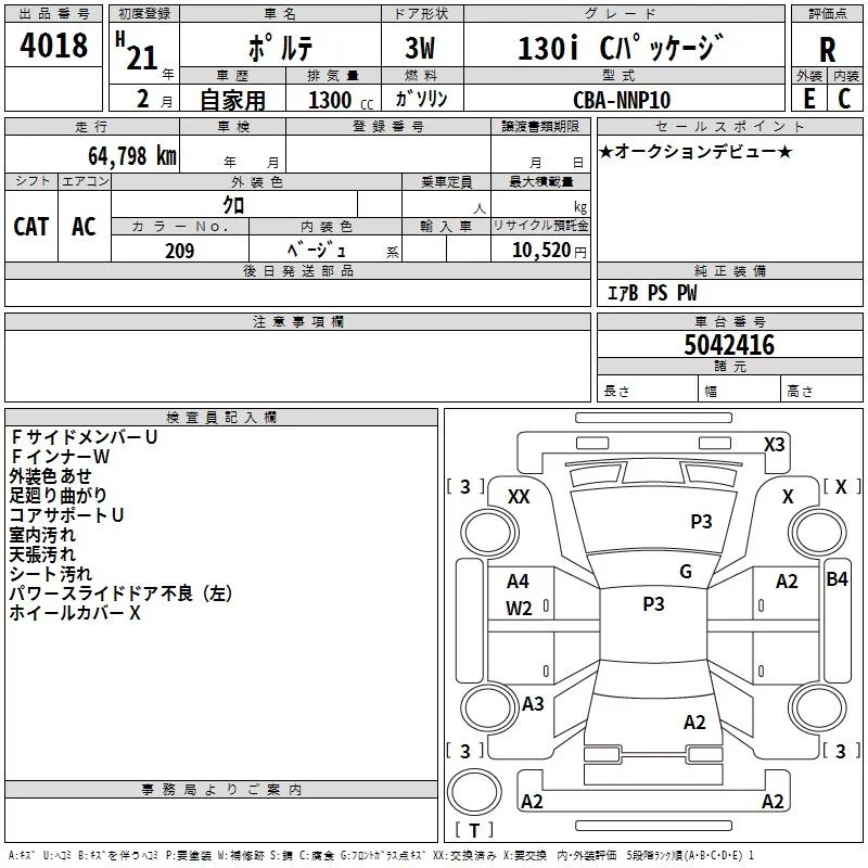 130I C PACKAGE HID SELECTION | CBA-NNP10 | 2NZ-FE | FF | 4AT | 1298cc | 87ps(64kW)/6000rpm | AИ-92 | 1 527 750 | |