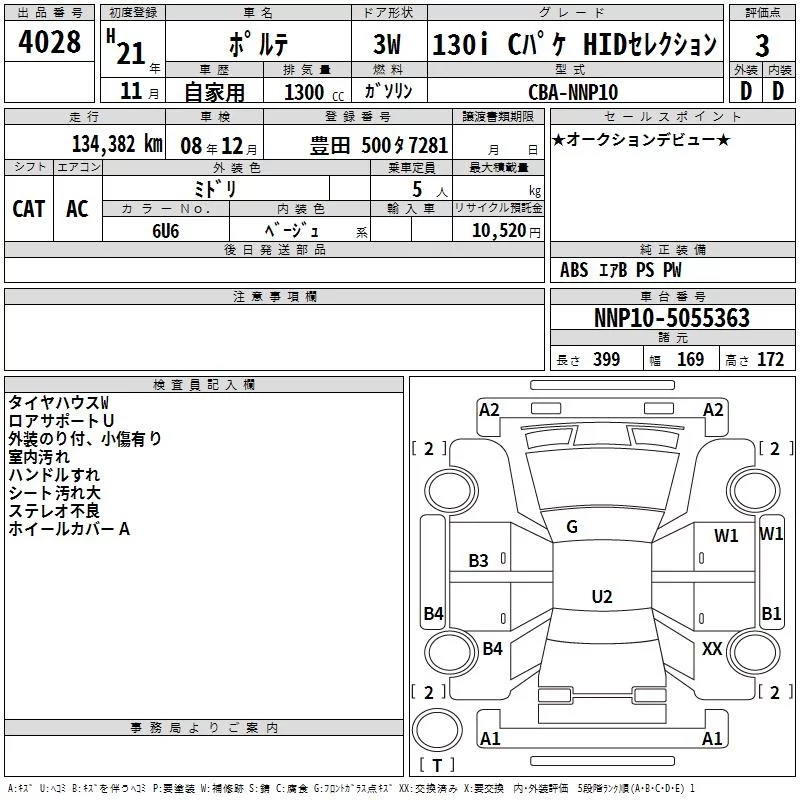 130I C PACKAGE HID SELECTION | CBA-NNP10 | 2NZ-FE | FF | 4AT | 1298cc | 87ps(64kW)/6000rpm | AИ-92 | 1 527 750 | |