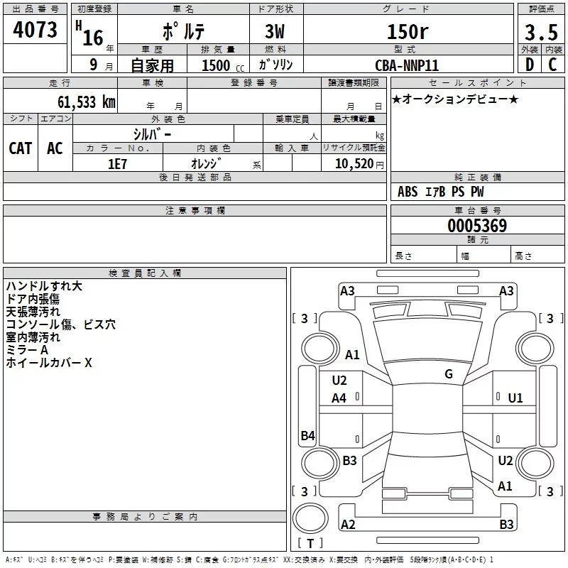 150R | CBA-NNP11 | 1NZ-FE | FF | 4AT | 1496cc | 109ps(80kW)/6000rpm | AИ-92 | 1 575 000 | |
