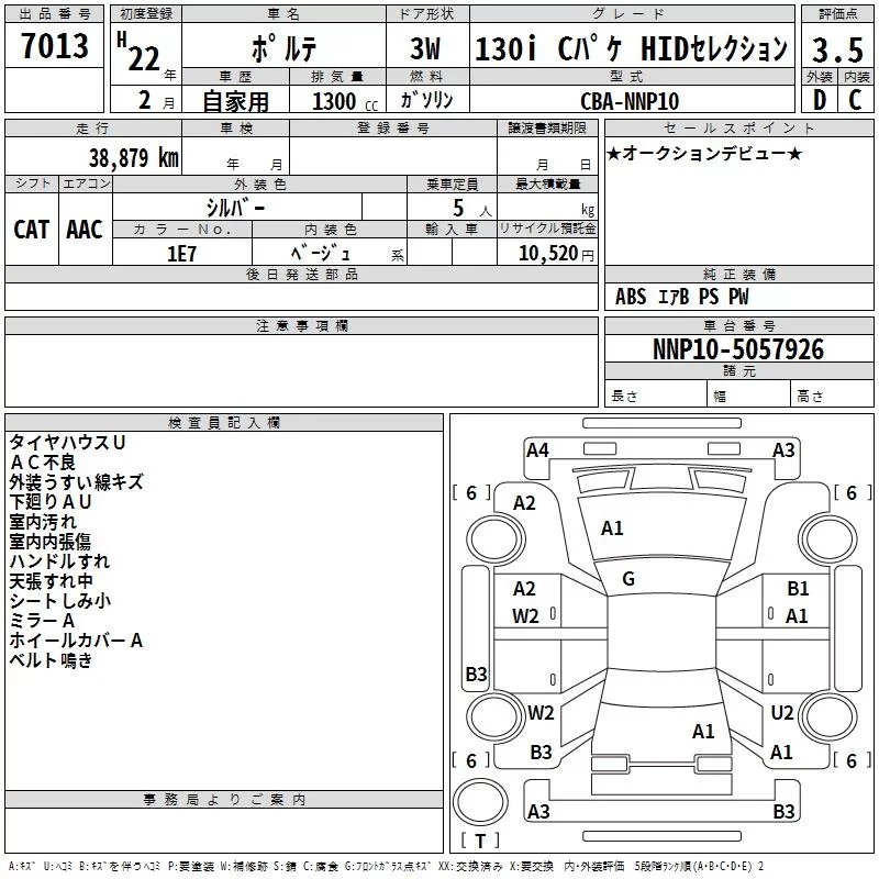 130I C PACKAGE HID SELECTION | DBA-NNP10 | 2NZ-FE | FF | 4AT | 1298cc | 87ps(64kW)/6000rpm | AИ-92 | 1 527 750 | |