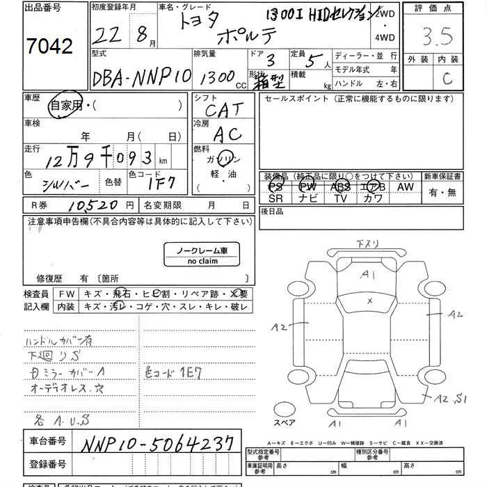 130I C PACKAGE HID SELECTION | DBA-NNP10 | 2NZ-FE | FF | 4AT | 1298cc | 87ps(64kW)/6000rpm | AИ-92 | 1 527 750 | |