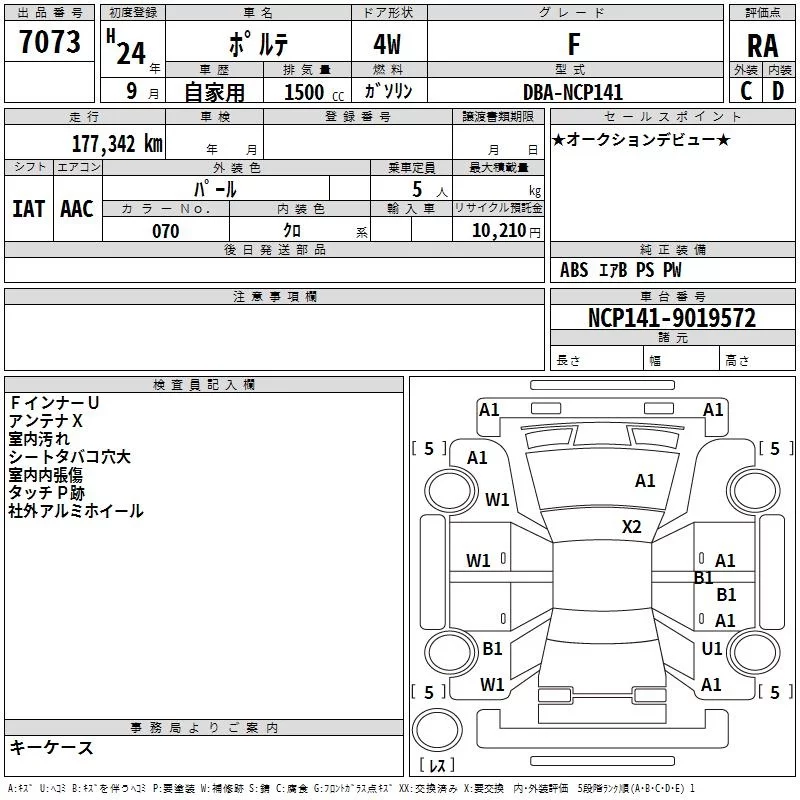 X | DBA-NCP145 | 1NZ-FE | Full-time 4WD | CVT | 1496cc | 103ps(76kW)/6000rpm | AИ-92 | 1 770 000 | |