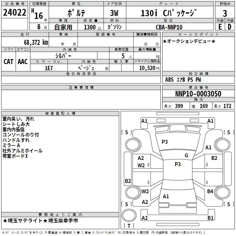 130I C PACKAGE | CBA-NNP10 | 2NZ-FE | FF | 4AT | 1298cc | 87ps(64kW)/6000rpm | AИ-92 | 1 491 000 | |