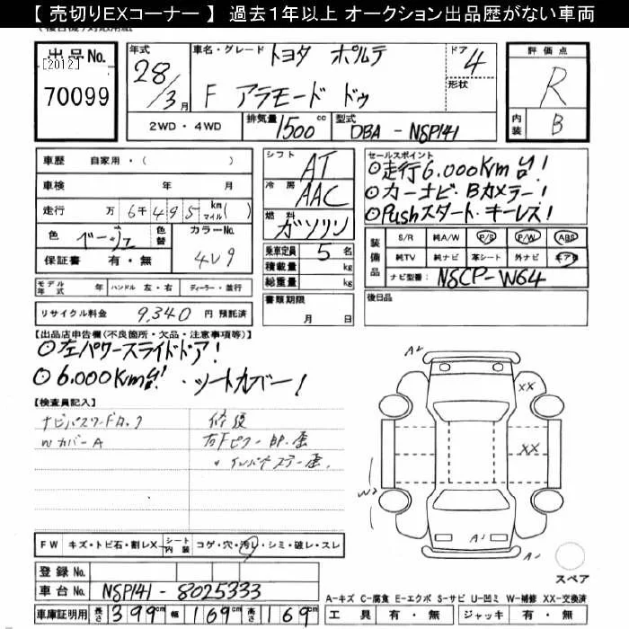 F | DBA-NSP141 | 2NR-FKE | FF | CVT | 1496cc | 109ps(80kW)/6000rpm | AИ-92 | 1 828 440 | |