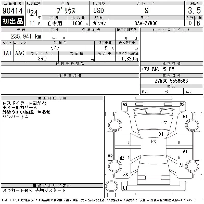 Дополнительными расходами может быть "сверхнормативное" хранение в порту, согласно СВХ "ВАТ": с 6-8 сутки по 1000р, 9-10 сутки по 2000р, с 11 суток по 5000р. Так же, в случае оформления а/м на физ лицо с пропиской не ДВФО, брокер предоставляет либо услугу оформления на ДВ физика стоимостью 20000р или регистрация ФЛ стоимостью 10000р. Вся представленная на сайте информация, касающаяся технических характеристик, наличия на складе, стоимости товаров, носит информационный характер и ни при каких условиях не является публичной офертой, определяемой положениями Статьи 437(2) Гражданского кодекса РФ.