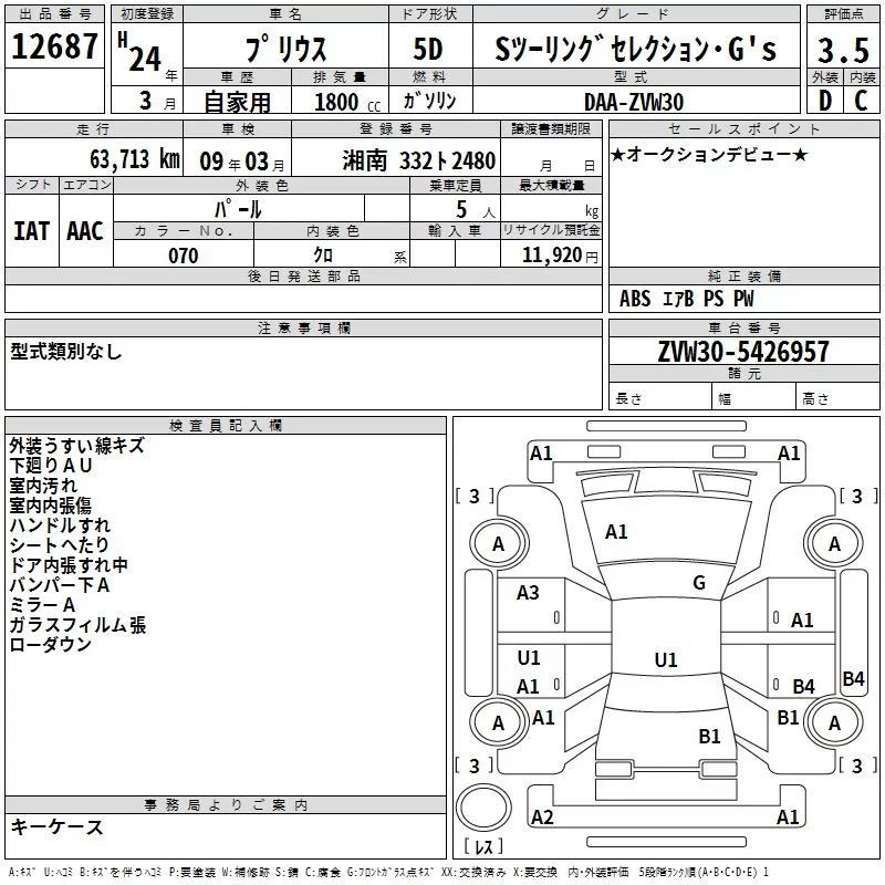 Toyota PRIUS 2012 • 1404405 ₽ под ключ из Японии