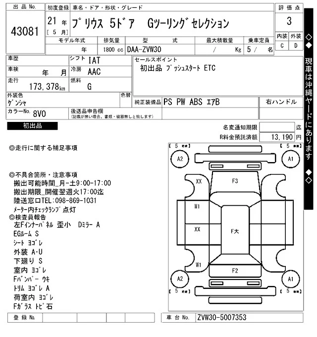 • 5 % от стоимости авто, но не менее 70.000 йен. Курс для перевода йен в рубли может отличаться.