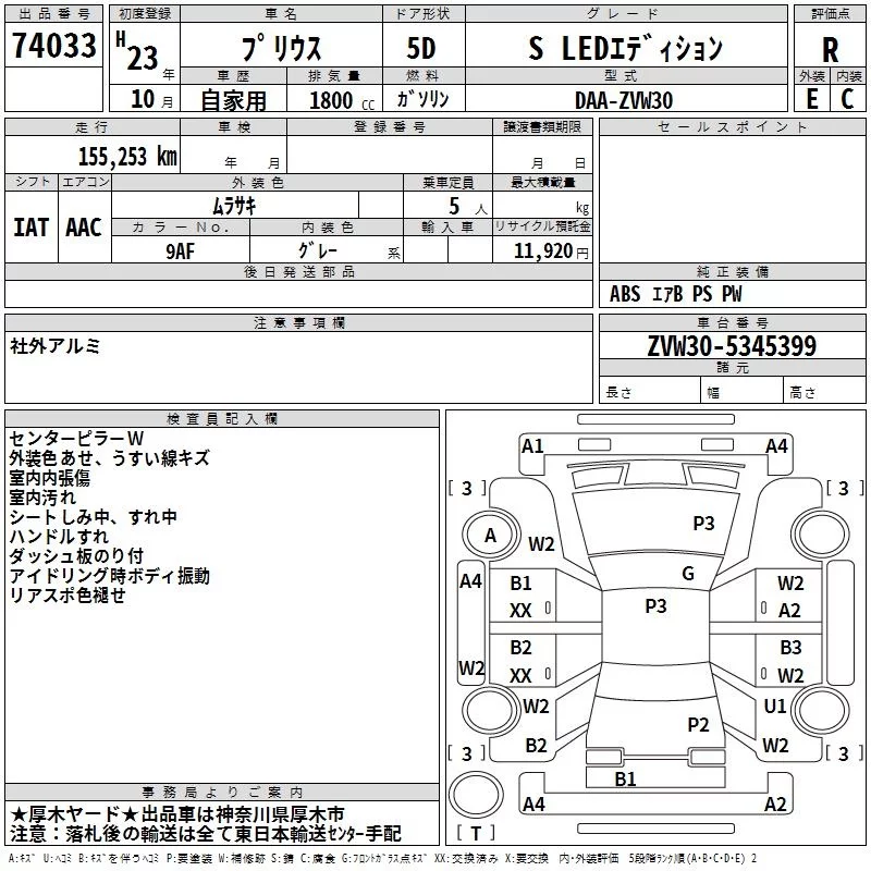 Toyota PRIUS 2011 • 1206349 ₽ под ключ из Японии