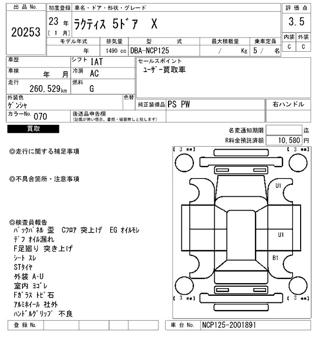 • Кузов: NCP125