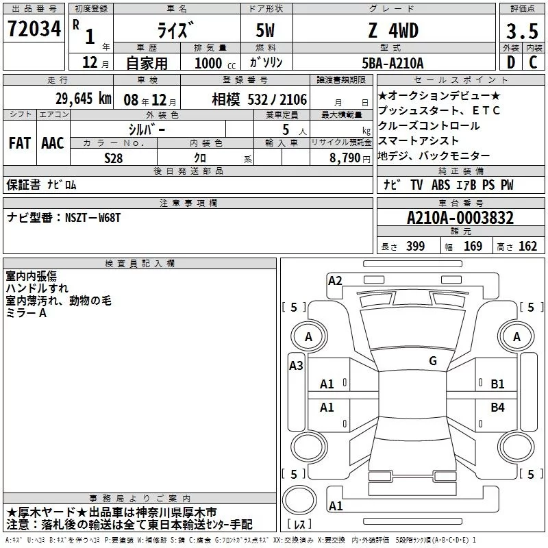 G | 5BA-A210A | 1KR-VET | Full-time 4WD | CVT | 996cc | 98ps(72kW)/6000rpm | AИ-92 | 2 133 700 | |