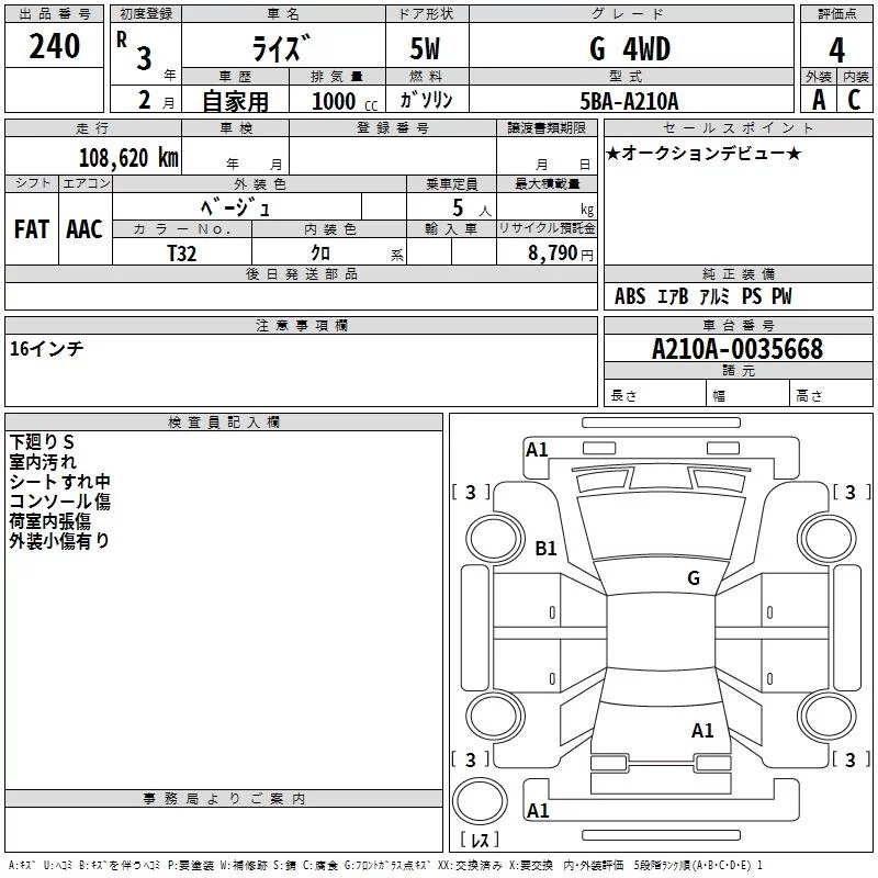 • Кузов: A210A