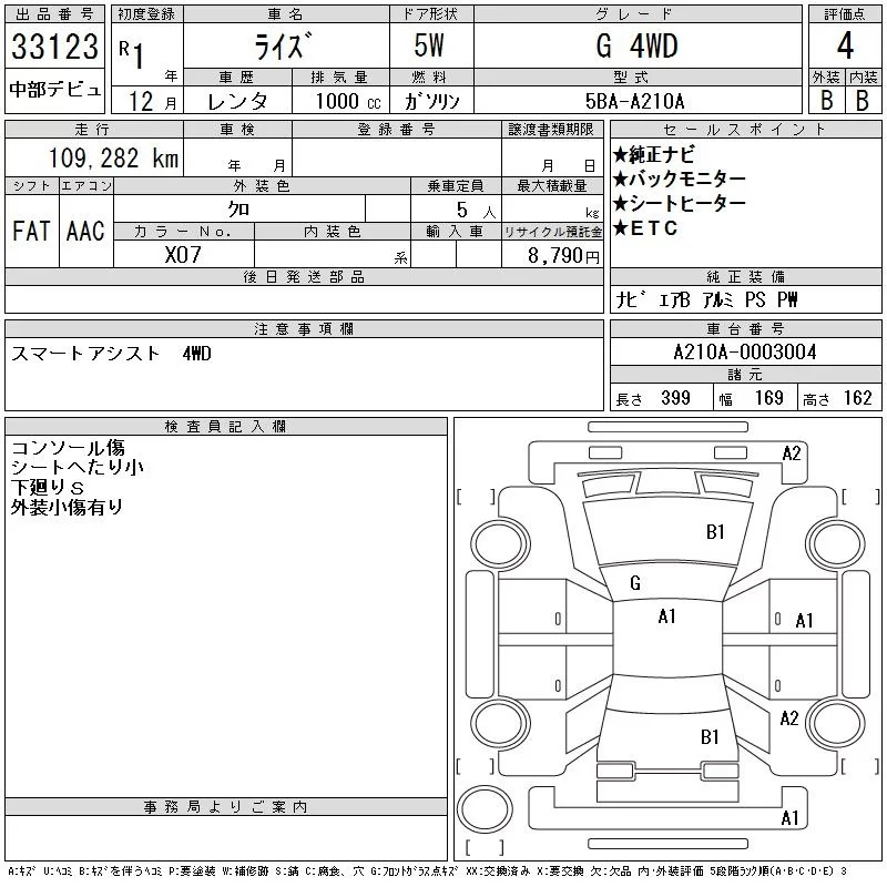 G | 5BA-A210A | 1KR-VET | Full-time 4WD | CVT | 996cc | 98ps(72kW)/6000rpm | AИ-92 | 2 133 700 | |