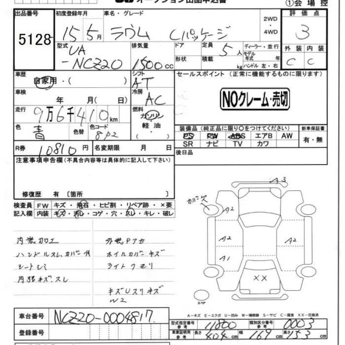 BASEGRADE | UA-NCZ25 | 1NZ-FE | Full-time 4WD | 4AT | 1496cc | 105ps(77kW)/6000rpm | AИ-92 | 1 578 000 | |