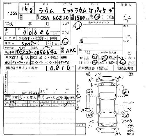 S PACKAGE | CBA-NCZ20 | 1NZ-FE | FF | 4AT | 1496cc | 109ps(80kW)/6000rpm | AИ-92 | 1 782 900 | |