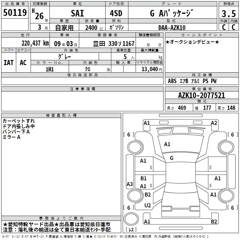 Toyota SAI 2014 • 5415512 ₽ под ключ из Японии