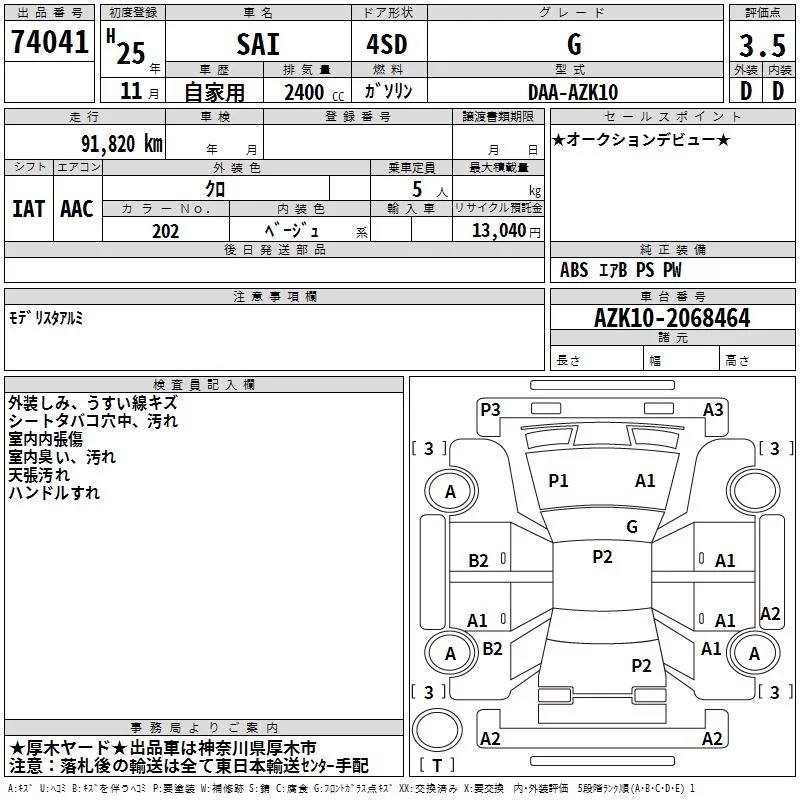 Toyota SAI 2013 • 5463023 ₽ под ключ из Японии