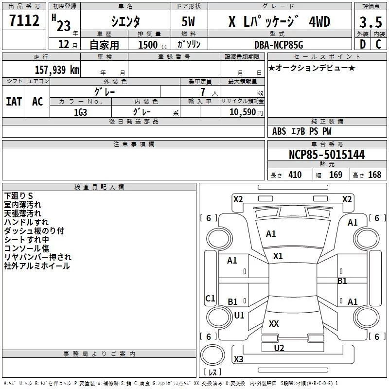 X | DBA-NCP85G | 1NZ-FE | Full-time 4WD | 4AT | 1496cc | 105ps(77kW)/6000rpm | AИ-92 | 1 753 500 | |