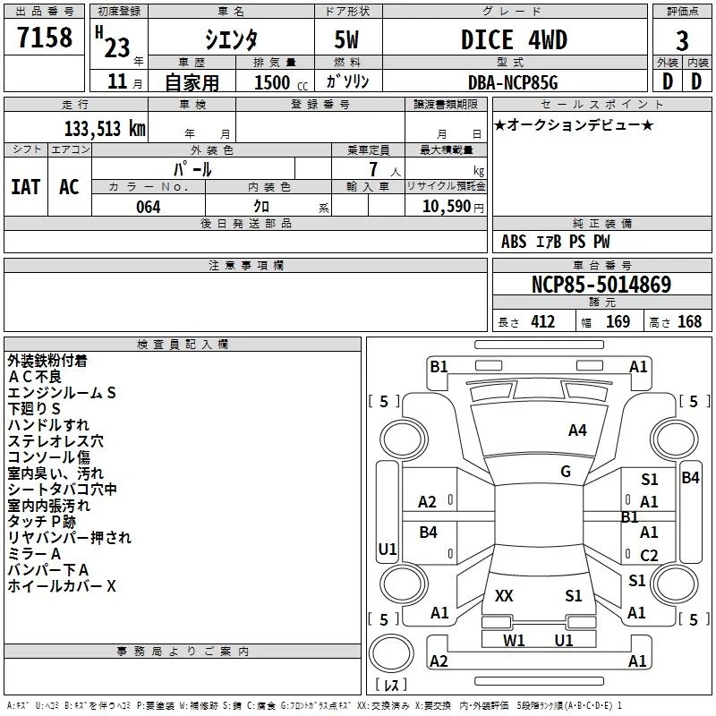 X | DBA-NCP85G | 1NZ-FE | Full-time 4WD | 4AT | 1496cc | 105ps(77kW)/6000rpm | AИ-92 | 1 753 500 | |