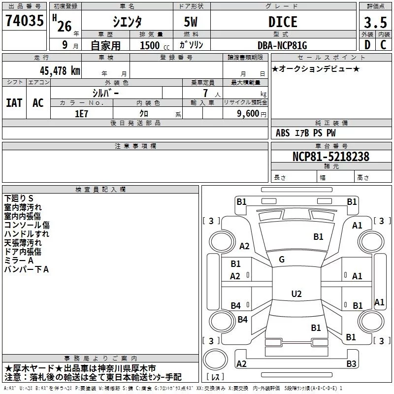 DICE | DBA-NCP81G | 1NZ-FE | FF | CVT | 1496cc | 110ps(81kW)/6000rpm | AИ-92 | 1 764 000 | |
