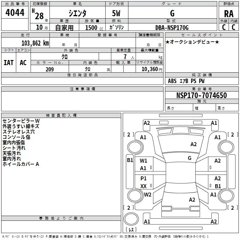 • Кузов: NSP170G