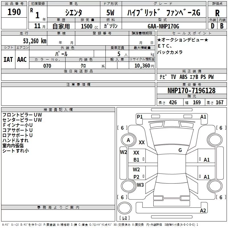X | DBA-NSP170G | 2NR-FKE | FF | CVT | 1496cc | 109ps(80kW)/6000rpm | AИ-92 | 1 850 200 | |