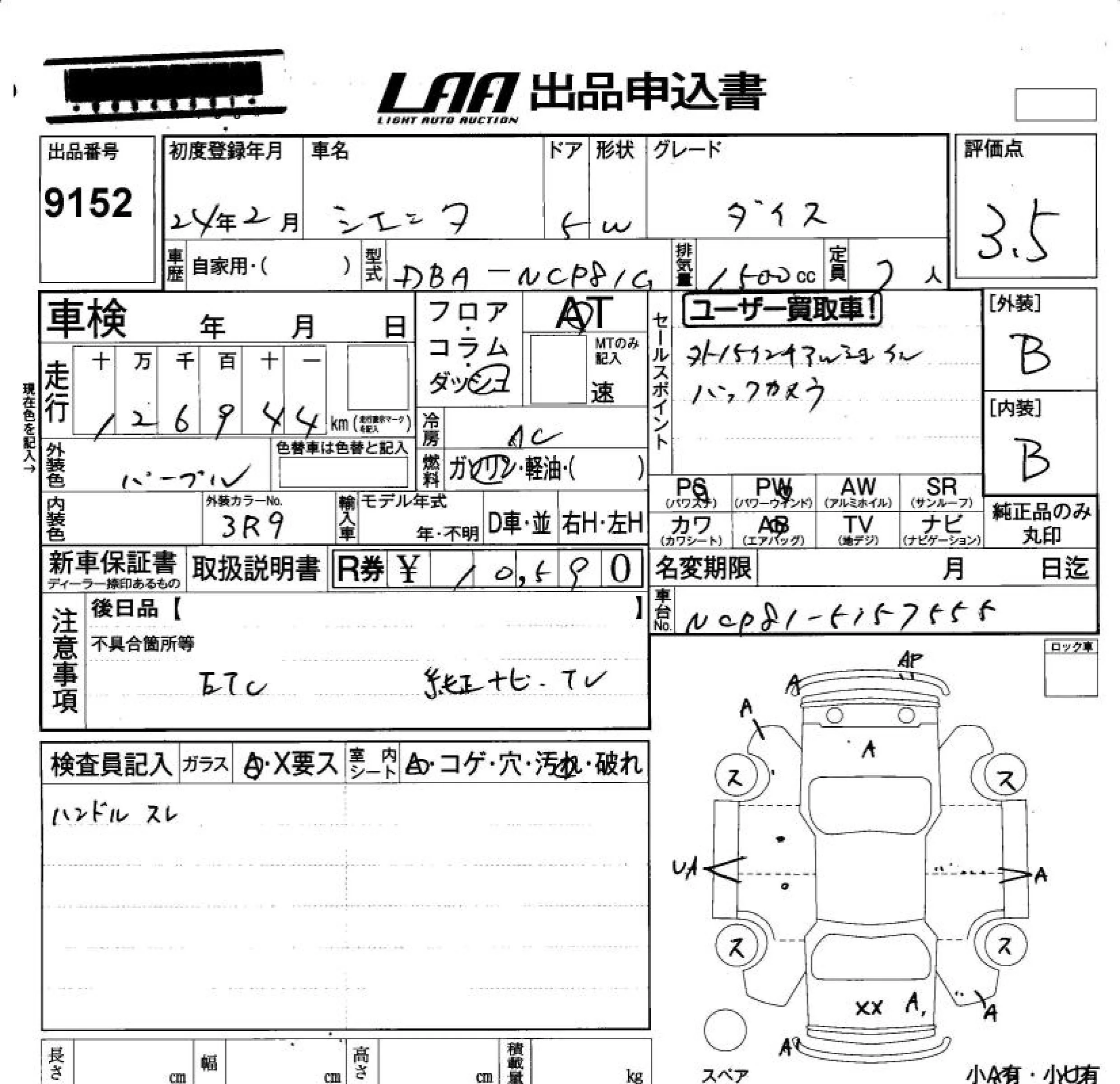 Toyota SIENTA 2012 • 835034 ₽ под ключ из Японии
