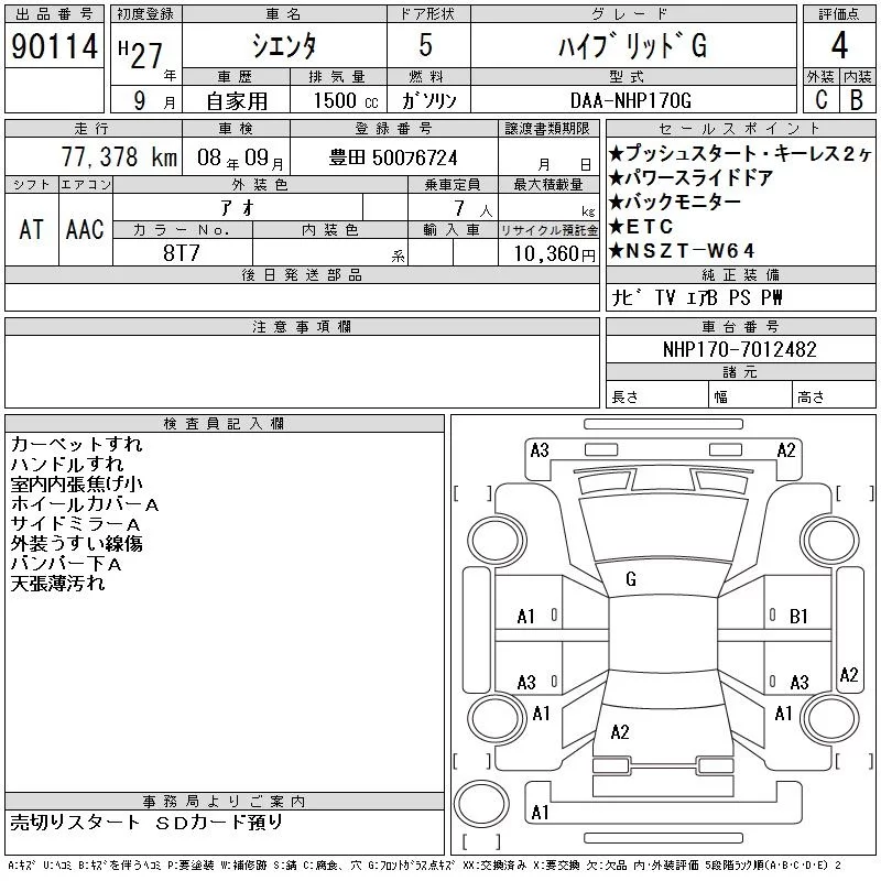 Toyota SIENTA 2015 • 1369167 ₽ под ключ из Японии
