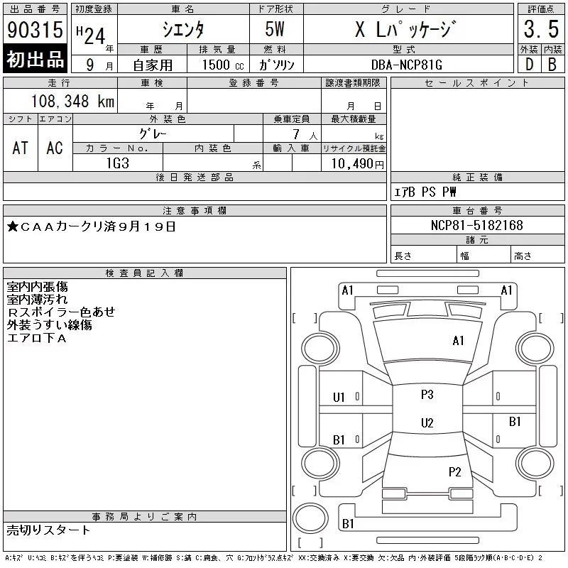 DICE LIMITED | DBA-NCP81G | 1NZ-FE | FF | CVT | 1496cc | 110ps(81kW)/6000rpm | AИ-92 | 1 760 000 |