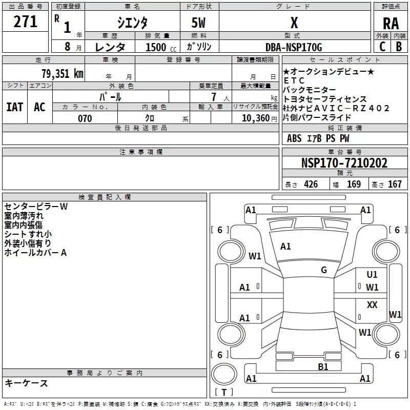 X | DBA-NCP175G | 1NZ-FE | Full-time 4WD | CVT | 1496cc | 103ps(76kW)/6000rpm | AИ-92 | 1 994 300 | |