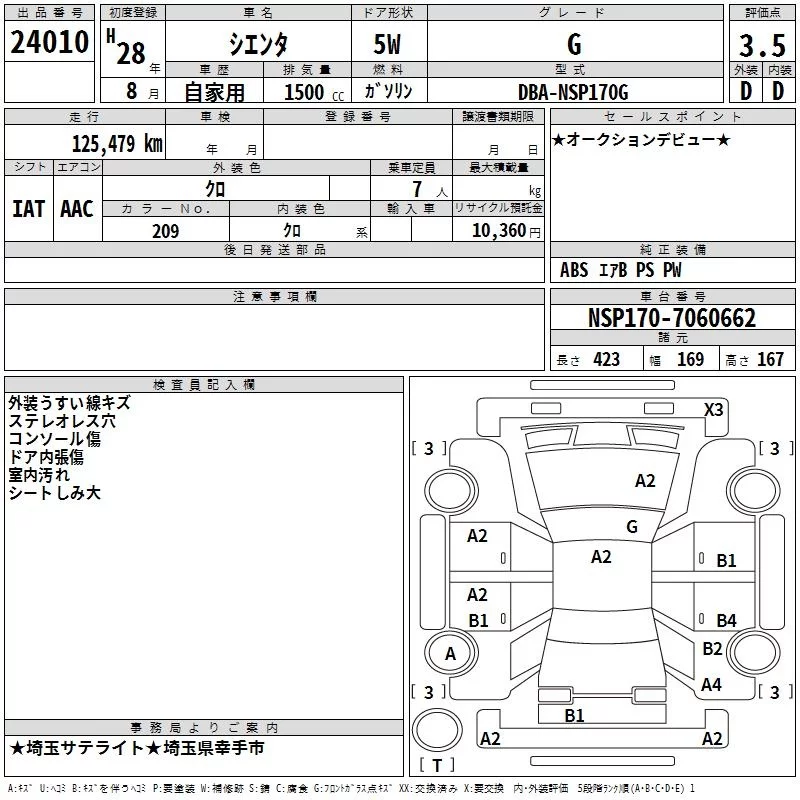 - Кузов: NSP170G