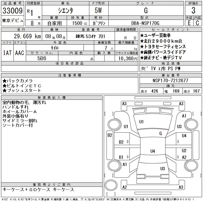 X | DBA-NCP175G | 1NZ-FE | Full-time 4WD | CVT | 1496cc | 103ps(76kW)/6000rpm | AИ-92 | 1 994 300 | |