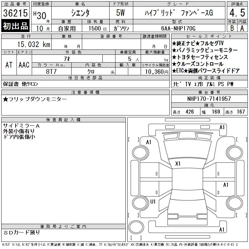 X | DBA-NCP175G | 1NZ-FE | Full-time 4WD | CVT | 1496cc | 103ps(76kW)/6000rpm | AИ-92 | 1 958 040 | |