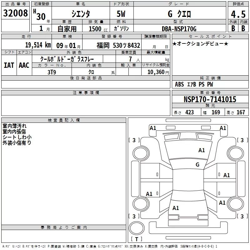 G | DBA-NSP170G | 2NR-FKE | FF | CVT | 1496cc | 109ps(80kW)/6000rpm | AИ-92 | 2 020 680 | |