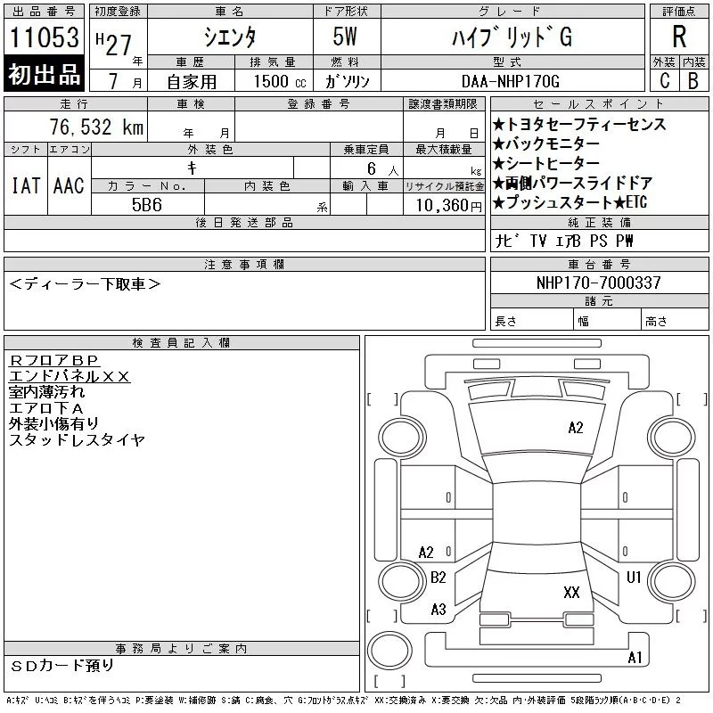 G | DBA-NSP170G | 2NR-FKE | FF | CVT | 1496cc | 109ps(80kW)/6000rpm | AИ-92 | 1 980 327 | |