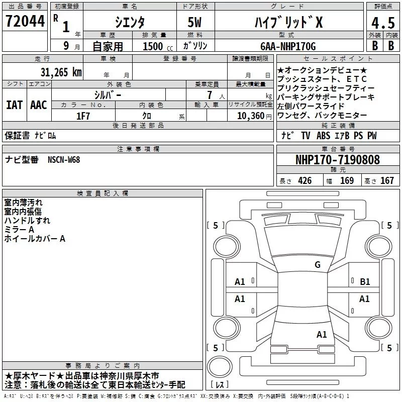 Toyota SIENTA 2019 • 1649083 ₽ под ключ из Японии