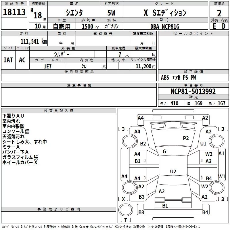 X S EDITION | DBA-NCP81G | 1NZ-FE | FF | CVT | 1496cc | 110ps(81kW)/6000rpm | AИ-92 | 1 669 500 | |