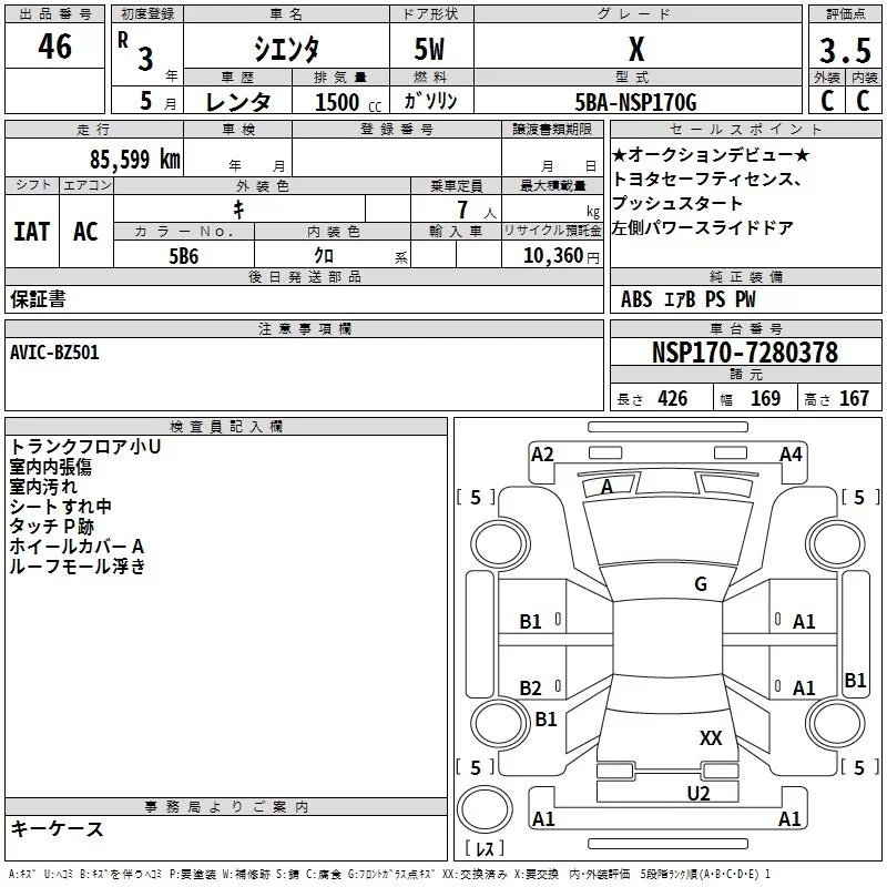 • Кузов: NSP170G