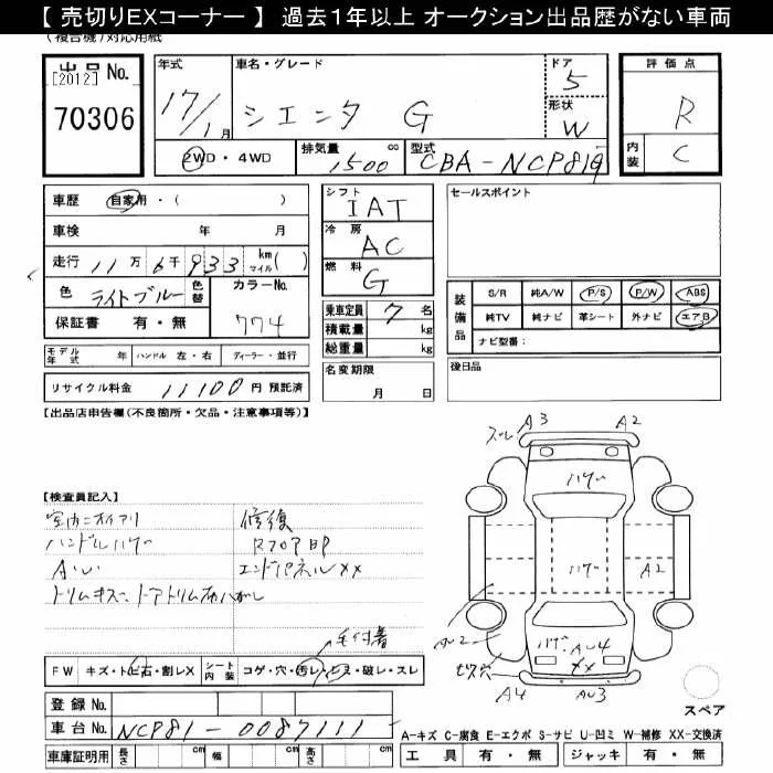 X | DBA-NCP81G | 1NZ-FE | FF | CVT | 1496cc | 110ps(81kW)/6000rpm | AИ-92 | 1 564 500 | |