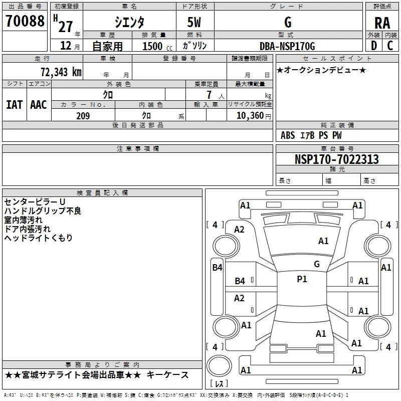 G | DBA-NSP170G | 2NR-FKE | FF | CVT | 1496cc | 109ps(80kW)/6000rpm | AИ-92 | 1 980 327 | |