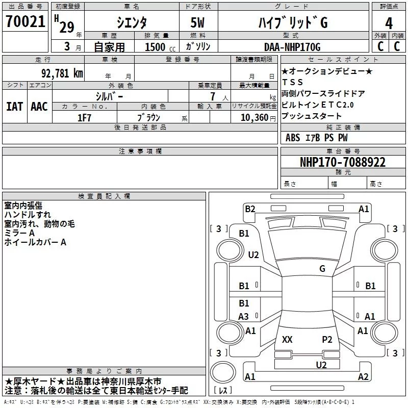 Toyota SIENTA 2017 • 1348214 ₽ под ключ из Японии