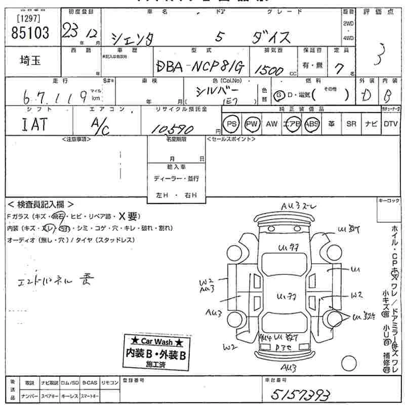 X | DBA-NCP85G | 1NZ-FE | Full-time 4WD | 4AT | 1496cc | 105ps(77kW)/6000rpm | AИ-92 | 1 753 500 | |