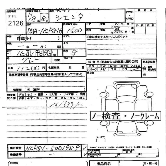 G | DBA-NCP81G | 1NZ-FE | FF | CVT | 1496cc | 110ps(81kW)/6000rpm | AИ-92 | 1 764 000 | |